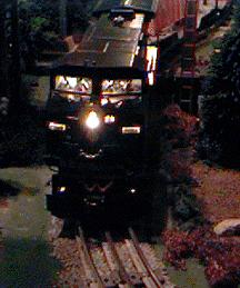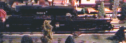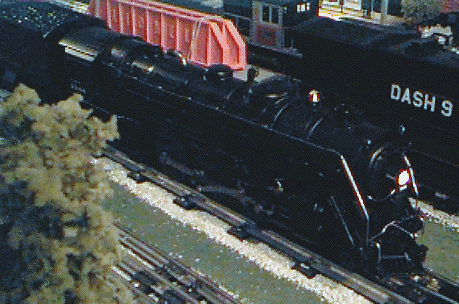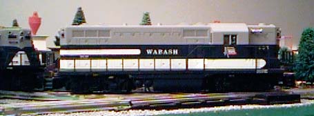 With the preliminary running out of the way, I decided to go right to the extreme test. A Single Wabash Geep would attempt to pull the same long freight around. Well, it was a success, a rousing success, even passing through some of my sharper O turns from a complete stop, the unit spun much less that the Milwaukee Road Geep on startup. You might also want to note, that if you have areas of uneven track the diecast tank seems to not quite hang down as low as the plastic tank of the earlier Geeps. I like the look and the operation of this 3 piece set, I think you will too.